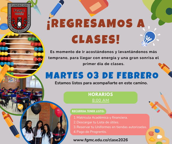 El Colegio Gimnasio Moderno Del Cauca, es una Institución educativa Calendario A. Que ofrece una educación con calidad en los niveles de Preescolar, Básica Primaria, Secundaria y Media académica, promoviendo su Proyecto de Crecimiento Personal.